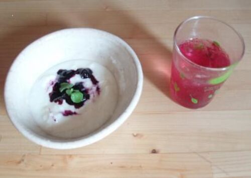 ヨーグルトにかかっているのがブルーベリージャム となりが、赤紫蘇ジュース 下は、甘酢しょうが と ジェノベーゼソース。 自然の色はなんてきれいなんだ! …と私は思うが、 ジュースを見て 「毒々しい。ドラクエで手に入れそうだ。」という声も…。 たしかに…